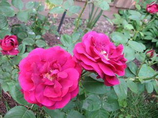 When I moved in there were 6 prissy pink rose bushes in the back along the fence. On the side there were day lilies and out front there were hostas. |