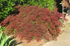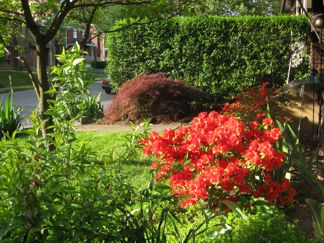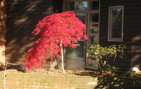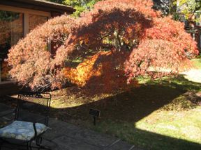 Sometime in the last 15 years another Japanese Maple was added out front. This one turns a beautiful red color in the fall. |