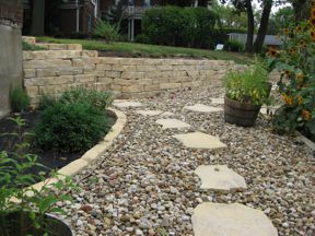 Then I moved to Dad's house after my stepmother moved. It had a lot more yard, and more challenges. There were a number of beds, but they are hard to keep up with the weeds. The grass was not the best and there were lots of weeds there as well. There were more yew bushes than I wanted, and the lower back was quite a jungle. The landscaping in the back was overgrown and the terracing blocks had tumbled down the hill. In the first few years, I did minimal gardening. I worked on the the house itself and had a busy work travel schedule. After a few years of planting a few perennials, I started with serious hardscaping, and took out many of the trees and bushes that were blocking the sun.