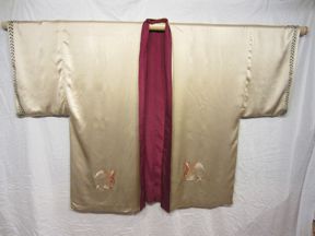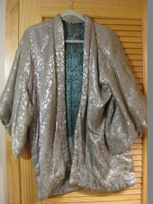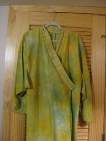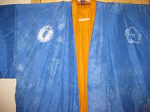 Padded and lined Dobuku. The lining as my first attempt to do that solid golden yellow dyeing. You can't see the little red spots of dye, but they are there. | I partially made this dobuku, and then in a class, I taught the magic turn it inside out construction technique. (It's magic.) | ![]() |