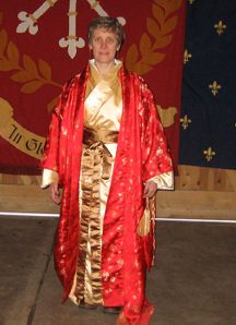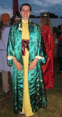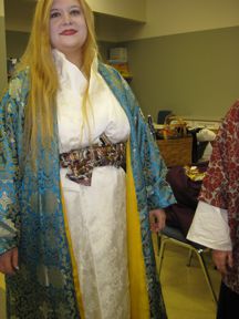 Outfit for Magnus's 20 anniversary of his knighting. I made the short kosode. | I gifted Leah the uchikake so she had a nice outfit to complement her parents, their majesties. She needed an obi, a yellow kosode, and a white under kosode. | ![]() |