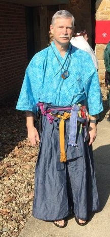 I have made a number of Dobuku through the years as presents for others and one or two for myself. I also learned some shibori resist dyeing techniques. In the last Dobuku here, I put the two together. There are also a couple cool looking kosode that I make as well.